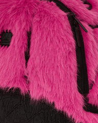 Dimensions: 18' x 6' x 11.5' • Front zipper pocket • Side pockets • Zippered Stash pocket • Separate velour sunglass compartment • Ergonomic mesh back padding • Adjustable Straps for custom sizing • Gold zippers with metal hardware • Metal 'Sprayground Authentic' badge • Slide through back sleeve connects to carry-on luggage to free your hands